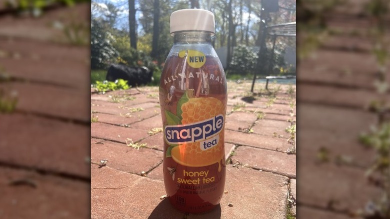 Snapple's honey sweet tea certainly boasts a flavor that is wholly different than any of their other iced teas. When sipping the drink at room temperature, the overwhelming scent and taste of honey was at the forefront of our palettes. When poured over ice, the taste of this beverage immediately reminded us of McDonald's controversially sweet sweet iced tea. Snapple's honey sweet tea pretty much tastes like liquefied honey, and you can base your personal Snapple ranking off of that information. For us, the beverage was a little too sweet, but if we were specifically in the mood for a sweet tea, this would hit the spot.