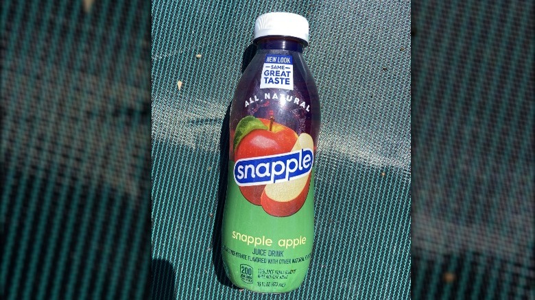 Did you know that the first ever Snapple flavor was apple? When three friends got together to start a beverage company centered around using fresh ingredients, crisp apples were the first choice, hence the company's name, which is a portmanteau of the words "snappy" and "apple" (via The New York Times). As such, they still produce a widely popular apple flavored juice today, and it's the only flavor of theirs that actually includes the company name in its title.