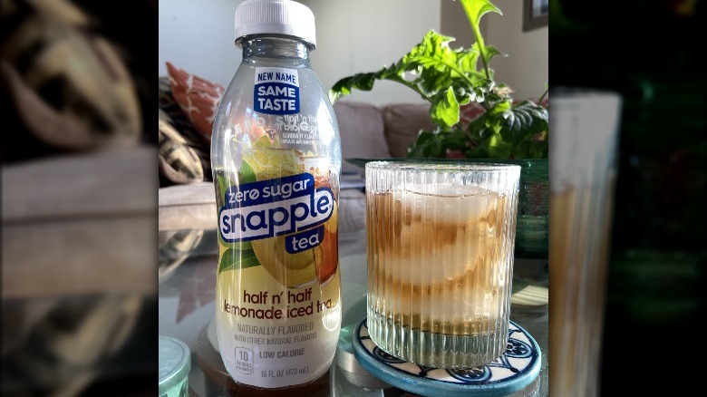 To compare, Snapple's half n' half lemonade iced tea contains a whopping 51 grams of sugar per 16-ounce bottle, while a 16.9-ounce bottle of AriZona's half-and-half has 44 grams. As for its similarity to Snapple's lemon tea, the two don't compare. While Snapple's lemon tea is sweet, it's also refreshing and lemony, with 36 grams of sugar swirled into each 16-ounce bottle.
