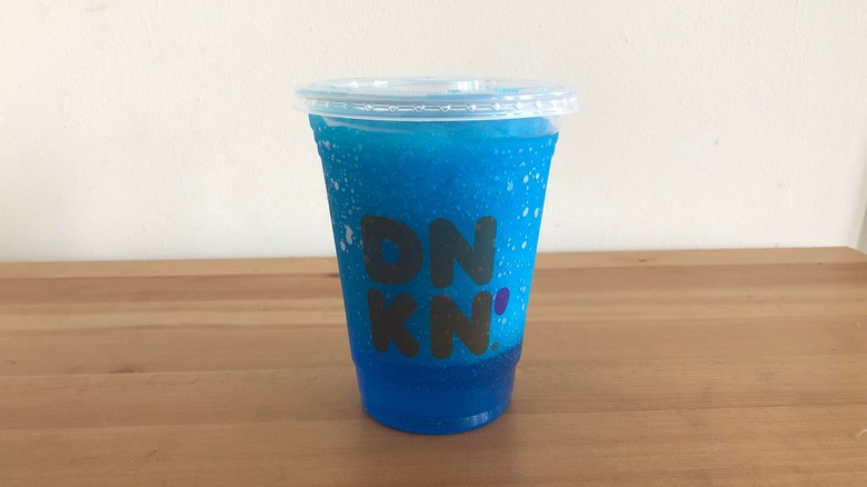 Just how many sips you'll be able to take before getting tired of the flavor is another thing. As you'd probably expect, this Coolatta is very, very sweet. You're essentially signing up for a dessert, not a drink, when you make this your Dunkin' order. The flavor is also artificial, so while it might taste refreshing at first, it gets old after a while. We think this would be a fantastic drink for a kid, but once you reach a certain age and your tastes change, we doubt you're going to want to order this before work or after your lunch break. We would probably pass on ordering this again, even if we love the electric blue color.