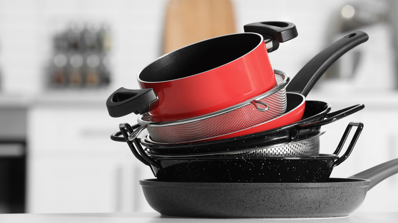 Nonstick cookware has been a staple in U.S. kitchens since the 1960s (via APS Physics). Pots and pans with nonstick coatings are perfect for sticky dishes like pancakes, eggs, and fish, and make for easy clean up. While it is cast iron pans that usually have a reputation for needing lots of TLC, nonstick surfaces need proper care as well if they're going to continue working optimally.