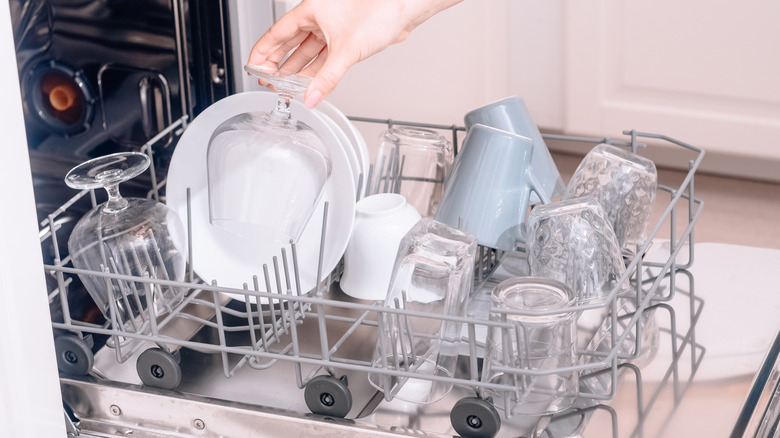 Another concern about putting nonstick cookware in the dishwasher is the compatibility of its shower-mates. Just open your dishwasher at the end of a cycle and note the conglomerate of utensils, glassware, knives, and baking dishes — all a potential threat to the delicate surface of your beloved pans. Pantry and Larder says that just because they look orderly and sparkling clean at the end doesn't mean there weren't some shenanigans going on behind closed doors. Metal utensils in particular can break loose and ding or damage other dishes and cookware.