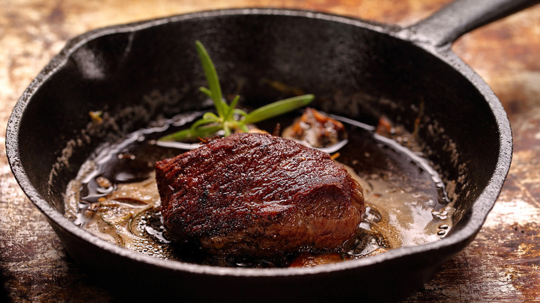 Whether you're using them on the stove, in the oven, or over an open fire during a camping trip, cast iron skillets are an undeniably useful tool for any home cook. As America's Test Kitchen reported, cast iron skillets are unmatched when it comes to retaining heat (allowing you to get the perfect sear), last for decades, and actually improve with age and use. Plus, when well-seasoned, they have a natural ability to develop a nonstick surface. But there is one thing that stops many from incorporating cast iron pans into their day-to-day cooking routines: In order to access all of these benefits, cast iron skillets need to be cleaned and cared for in a specific way that differs from other pans.