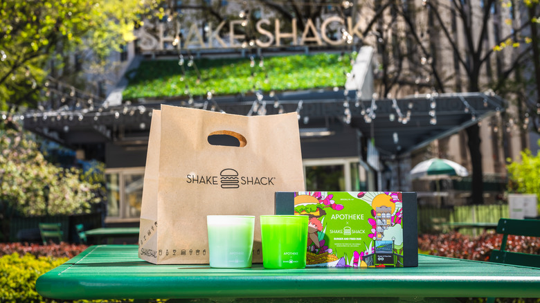 How is it possible for that burger aroma to be captured in a candle? The secret, Apotheke says, is ScentTrek technology. The way ScentTrek works, per Food & Wine, is a granular powder absorbs fragrance from a sample of air pulled from whatever object the candle is meant to emulate. The candle company's slogan "inspired by life's simple moments" is accurate in the most literal sense. Shake Shack CEO Randy Garutti noticed the brand's uniqueness, and sent a DM to Apotheke founder Chrissy Fichtl in 2021 to make the collaboration happen, says Food & Wine.