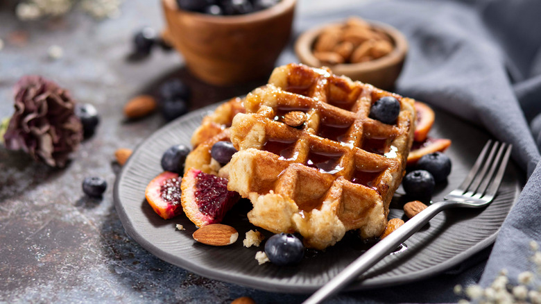 The secret ingredient that helps take the work out of waffles is yeast. The Spruce Eats explains that yeast is a single-celled organism. It gives flavor to bread, beers, and kombucha. It can also add a ton of flavor to your waffles. Epicurious notes that using a yeasted dough will make for a crispier waffle and can also cut down on morning prep time, as it needs to rest overnight. With this method of preparing the beloved breakfast item, the waffle iron might become a regular feature on your kitchen countertop.