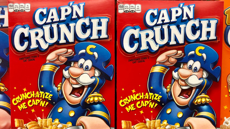 Cap'n Crunch, surprisingly brought to you by Quaker, is one of those cereals that has undergone many transformations in the modern food era. You can have a fruity twist with the addition of Berries (a generous definition of berries, though, very very generous). If you really enjoy those berries, you can get a box that's entirely berries called Oops!. And it seems there's always a peanut butter option in cereals, which is true for Cap'n Crunch. There's also almost always a chocolate option, but is there always a chocolate caramel option? Not so much. The Captain's got you there!