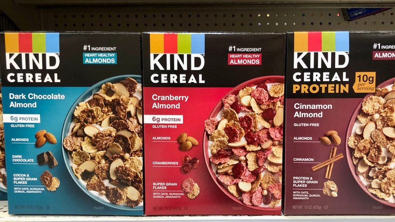 There are some great flavors of KIND cereal to choose from. It's a miracle that so few other brands have come up with a Dark Chocolate Almond variety themselves. If chocolate in the morning seems a little much, channel your favorite Starbucks macchiato with the Caramel Almond flakes. Or, hedge your bets a bit with the comforting Apple Cinnamon-flavored grains. Whatever flavor floats your boat, you're still getting in plenty of whole grain oats, sorghum, quinoa, and amaranth.
