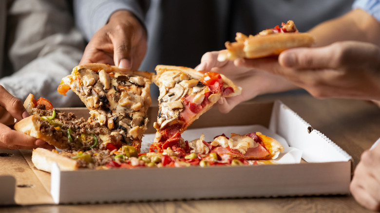 Of all the foods people like to order for delivery, pizza is of course a time-tested option, with the first pizza delivery said to have taken place in 1889, when the Italian queen Margherita — after whom the famous tomato-and-fresh-mozzarella pie is named — grew tired of the French-style food that was being served during a royal trip to Naples, and requested some local grub, which was delivered to her quarters by the pizzaiolo Raffaele Esposito (via Food & Wine). Pizza delivery became readily available to everyday folk in the 1960s, according to Hungry Howie's, and has been a fixture of modern life ever since — even before the advent of the internet or food delivery apps like Grubhub and Uber Eats.