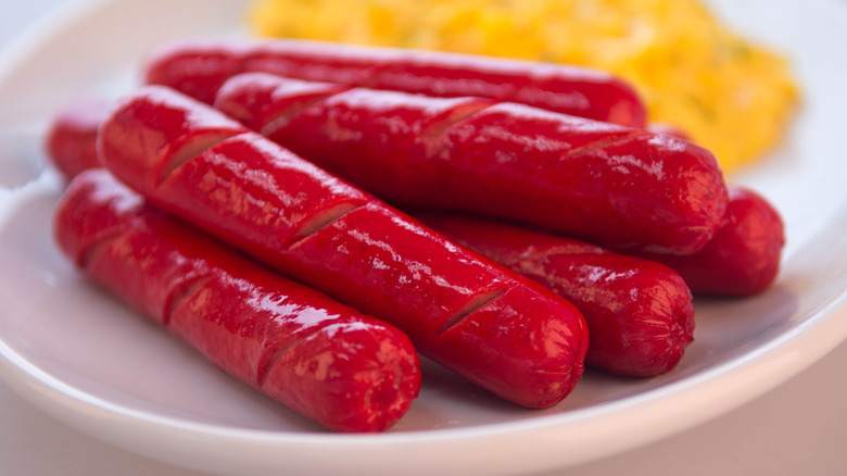 Serious Eats notes that this should only be done with skinless hot dogs. Most hot dogs available in stores are cooked using a synthetic casing that is removed before they're shipped out to consumers. These are skinless hot dogs, as opposed to those in natural casings which are harder to find, and not as well suited to slicing. Anyone interested in trying a dog with a natural casing could opt for the Danish rødpølser which typically uses a natural sheep casing per This is Mold.