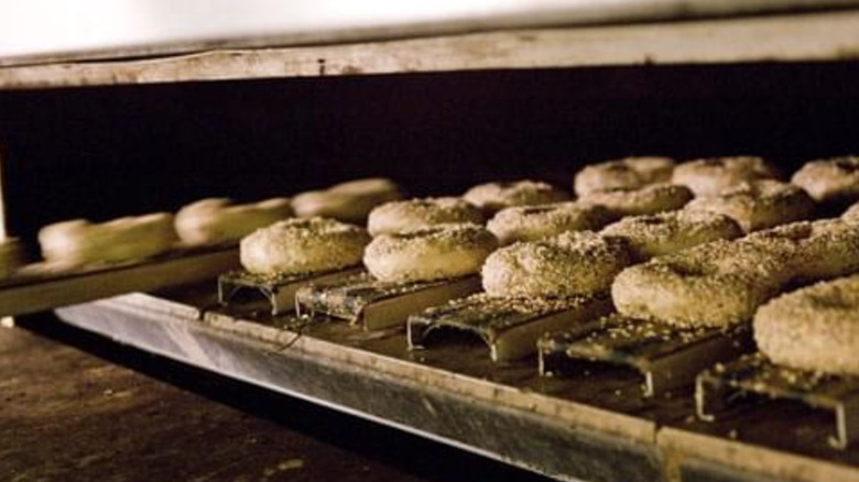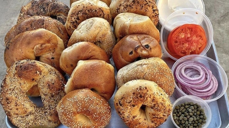 When you finally step in the compact shop after waiting in line outside, don't be thwarted by the small selection — it's everything you need for a filling lunch. According to the bagel-going crowd on Tripadvisor, there's a certain je ne sais quoi that keeps bringing them back. The bagels themselves are satisfyingly large, have a dense texture, and very little chew. They spend a minimal amount of time in the oven so you might miss the well-browned flavor on the crust. In fact, there is almost no bagel skin — the outer layer that develops from boiling before baking — present. The flavor is very mild and since they don't pack competing flavors on their own, definitely load these bagels with sandwich fixings or a flavorful cream cheese.