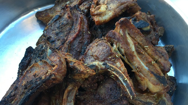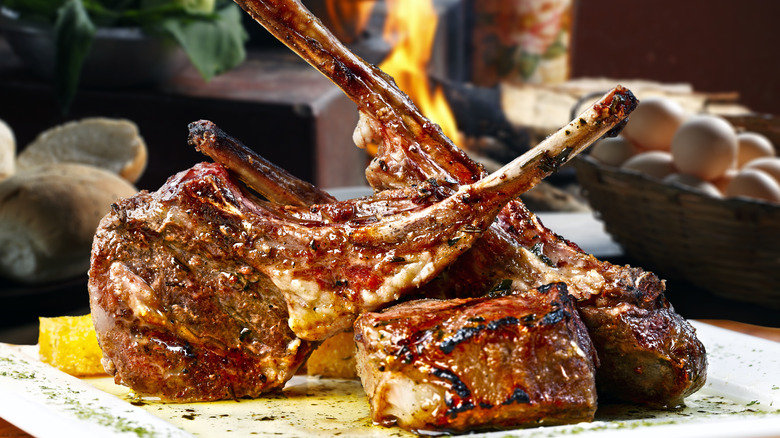 According to myfoodbook, when it comes to slow-cooking methods like smoking or braising, the best cuts are shoulder, leg, forequarter, shank, neck, and ribs — cuts with a lot of fat and connective tissue that will break down and make the lamb tender and juicy. Interestingly, some sausages can also be slow-cooked. Other cuts, such as lamb rib or loin chops, are usually seared according to Electric City Butcher, which notes that these more delicate cuts benefit from shorter cooking times over high heat for that sought-after juicy, tender texture.