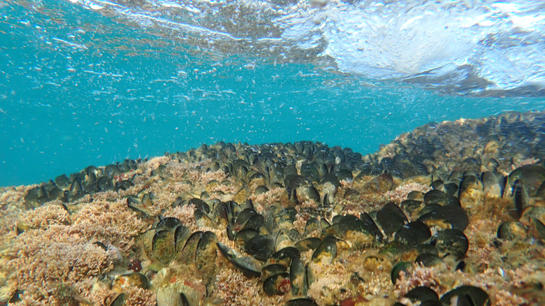 However, despite their sturdiness, wild mussels are still vulnerable to predator attacks. Crabs and starfish can ravage a colony of mussels, via Global Seafood Alliance. Humans also pose a larger predatory threat to wild mussel habitats than farmed ones, it says. Wild mussels are usually harvested by being dredged directly from the seafloor, which directly impacts both the mussels and their environment.