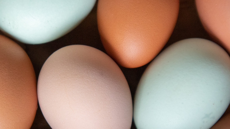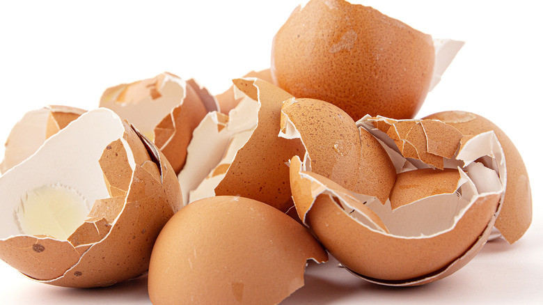 After achieving the desired doneness, the next thing you want to achieve when making hard-boiled eggs is an easy-to-peel shell. Did you ever have a potluck ruined because the deviled eggs were spotted with dimples after being peeled — or rather, torn open? Oddly enough, there is a way to avoid pockmarked peeled eggs: Just use older eggs. Older eggs are much easier to peel than a newly laid dozen. According to Wired, older eggs are easier to peel because they have lower carbon dioxide levels, which leads to the loss of moisture in the egg, causing the air cell at the bottom of the shell to get bigger. As the air cell grows, a layer of air develops between the inner and outer membrane, making the eggs much easier to peel.