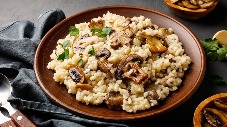 Bastianich has one more piece of advice for serving up a memorable risotto meal, and that's to serve the dish as soon as it is cooked. "You can't leave it — pasta, risotto — I remember we used to get called to the table and the saying was that if you don't come in time, the risotto will wait for you at the door. Meaning that it grows," she said, per Epicurious.