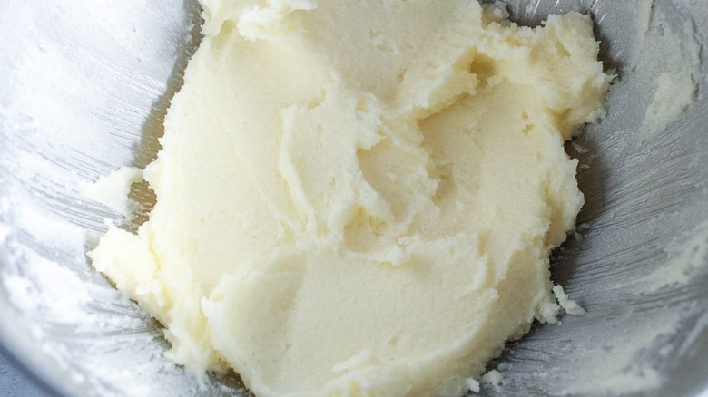 - Add the butter to the bowl of a stand mixer and use the paddle attachment to cream it until it is smooth.