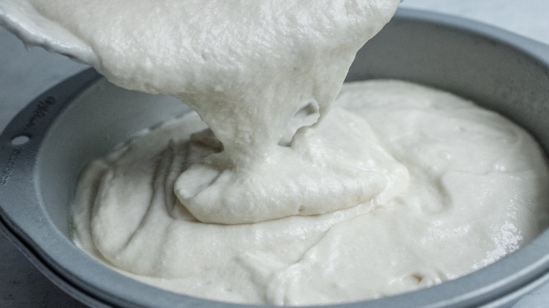 Making this cake batter requires three bowls, one being the bowl attached to your stand mixer. If you don't have one, no worries — Morone says you can use an electric mixer or even mix everything by hand, though the latter method might take a bit more time and effort.