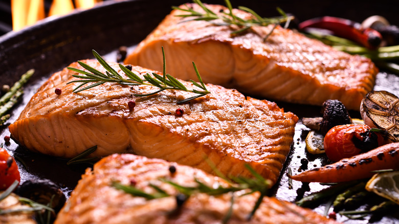 There's no question that fish overall is considered a heart-healthy food that's chockfull of vitamins and antioxidants, according to WebMD. The omega-3 fatty acids in fish can help maintain brain health during aging, lower the risk of heart disease, thwart depression, aid in thyroid function, and provide protein for healthy muscles and organs. But how many of these benefits come from leaving the skin on your fish? That can depend on the type of fish you choose.