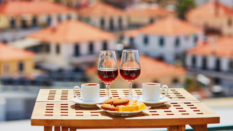 Madeira wine (and wine glass style) hails from the Portuguese island of Madeira and is a fortified dessert wine that is usually red, though white or rosé Madeiras can be found. The difference between Madeira and Port is how it is made. According to Taste of Lisboa, the production method — using high heat over multiple months — gives it a more complex flavor profile than port. Madeira is served in small 75 to 120 milliliters (3 to 4 ounces) wine glasses, however, Bespoke Unit suggests serving it in traditional copita nosing glasses (typically used for Scotch). Specially crafted styles can feature a glass cover to help capture the aromas before enjoying them.