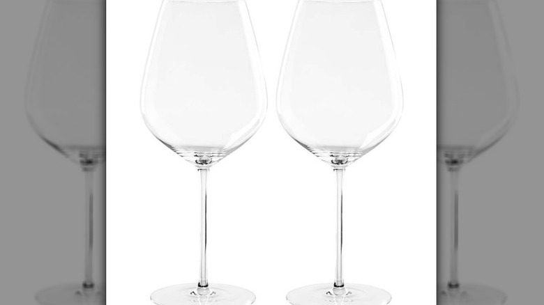 Syrah (called shiraz in Australia) is known for having very full tannins and a lot of peppery and spicy notes. A syrah glass has a healthy volume, a slightly thinner bowl than a Bordeaux glass, and with a pinched lip, it could be called egg-shaped (via Wineware). This structure is important for mitigating syrah's high tannins and balancing aromas and flavors, per Riedel. Syrah is also loved for its silky, velvety body, and it's important not to lose these features when working to stabilize a wine.