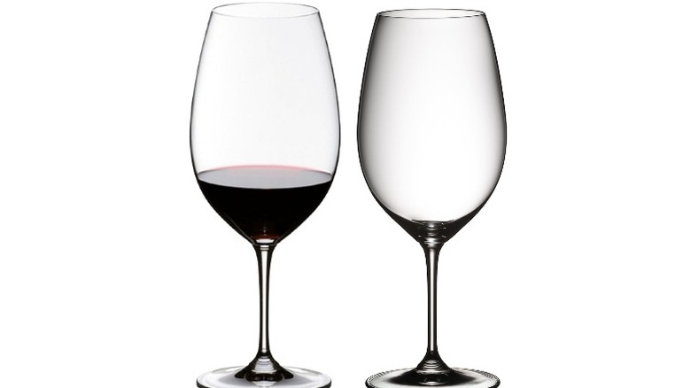 The merlot or cabernet sauvignon glasses are pieces you'll likely find at upscale steakhouses, next to that bold and expressive bottle of cabernet or merlot decanted and placed along with your porterhouse. Of course, an empty glass is a glass that's ready to be enjoyed. Forbes explains that the shape of the glass especially accentuates the aroma and tastes that are highly concentrated in cabernet sauvignon. Since cabernet and merlot are both on the full-bodied spectrum of red wine and are also high in polyphenols compound (tannins), a similar glass aids both.