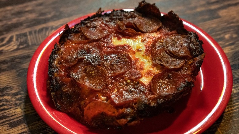 When most folks envision Chicago-style pizza, they probably think of touristy downtown spots like Pizzeria Uno, Gino's East, and Giordano's — theme park-sized temples to lasagna-thick pies heaped with sausage and cheese. However, despite the kitschy fun of such pizza palaces, most Chicagoans hit up Pequod's when that occasional deep-dish craving hits. Like any good deep-dish destination, this one is steeped in history, showing just how intertwined Chicago's pizza populace really is.