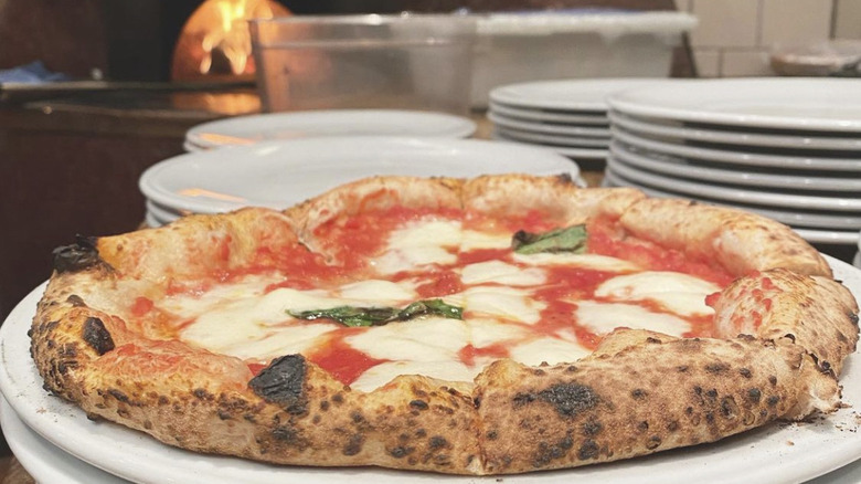 It's no surprise, however, that the pizza is the star of the show. Goldsmith is a certified pizzaiolo, and it shows in his commitment to craft and quality — right down to the wood-fired oven, imported from Italy (via The Washington Post). Delicately blistered from a quick 90-stint in the scorching-hot oven, each pizza arrives to the table thin and light with a puffy exterior crust. When it comes to toppings, quality is valued over quantity. You can't go wrong with a classic margherita, made with blended San Marzano tomatoes, fior di latte cheese, basil, and pecorino gran cru, but everything that comes out of Goldsmith's oven is a surefire hit.