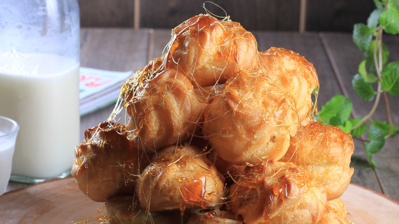 Even if you're not planning on making something as technical as, say, a recipe for croquembouche, spun sugar is a fun way to add a little pizzazz to all kinds of sweets, and a whisk is the perfect tool for dipping into the melted sugar and letting it drizzle off the ends in whatever shapes you'd like. Sure, it's not a quick process, and one that requires caution when working with a high-heat ingredient like melted sugar, but as long as you're patient and careful, a whisk can really bring the wow factor to your next dinner party.