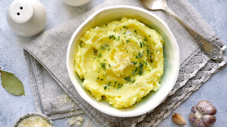 Mashed potatoes offer a neutral canvas that can be adapted to fit any flavor profile you'd like. Cheesy mashed potatoes — like the French dish, aligot – are one beloved spin on the classic, while garlicky, sour-cream-laced renditions are also a favorite. If you're feeling fancy, you can even make an ultra-luxurious version of mashed potatoes by adding cooked lobster meat or another decadent topping.