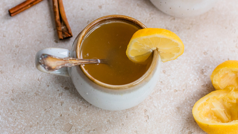 If whiskey's not your thing, there's no law against using a different kind of liquor. Shelbert says, "This certainly could be changed up with other alcohol including brandy, rum, and bourbon." She says you can also replace the water with tea, and also suggests that "hot apple cider offers a tasty alternative to hot water." Other tweaks you might consider are using sugar or maple syrup in place of the honey or even turning this hot drink into a cold one. As Shelbert tells us, "Iced toddies put a refreshing spin on a hot toddy."