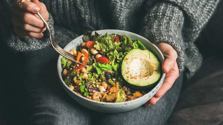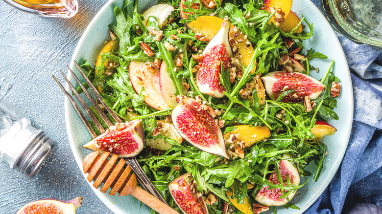 If you're choosing to eat a salad over the abundance of other, very tempting food options you could be eating instead you deserve to really enjoy it. There is nothing worse than suffering through a disappointing salad (throwing it out would be wasteful!) served alongside a mouthwatering main. One reason people enjoy restaurant salads more than the ones they make for themselves comes down to one thing: flavor. And where does so much flavor come from? The answer, according to the Kitchn, is probably not the first word you think of when eating a salad — fat.