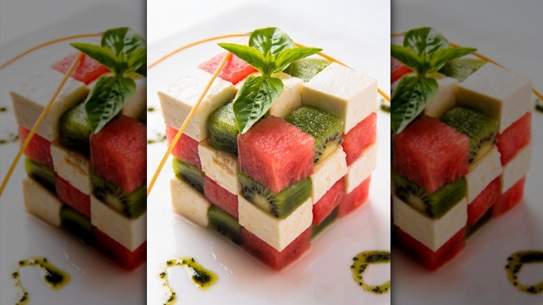Food Hacks has a few fruit salad suggestions to help you create a perfect side that will leave you with no leftovers. Choosing the right fruit combination can set the tone for the meal as familiar flavors conjure up memories of picnics past or give a taste of the upcoming season. Considering the ripeness of the fruit you're combining is equally important; you want to achieve complementary textures and avoid a mushy or overly crunchy bite. Garnishes like a citrus squeeze or chopped herbs will also set your salad apart, but the ingredient that will truly surprise and delight fruit salad fanatics is cheese.