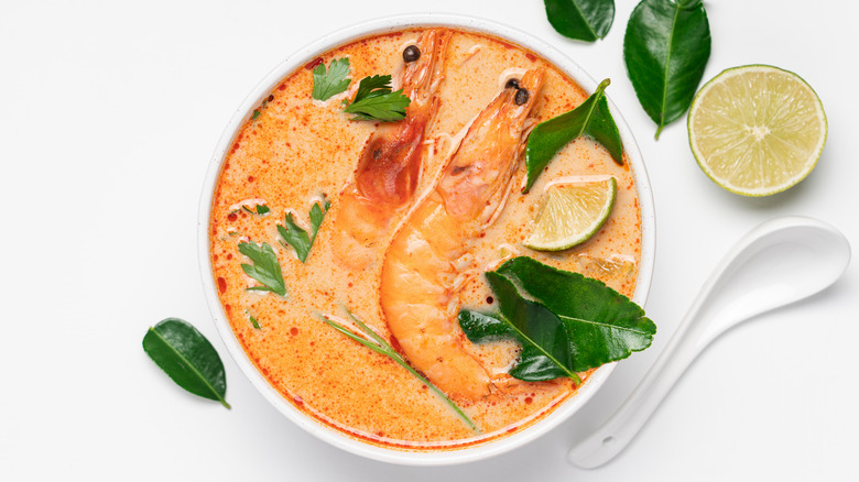 Coconut milk can be used in place of regular dairy milk in dishes like casseroles and soups. But if you really want coconut milk to shine as part of an appetizer or main course, the ingredient is best paired with a savory dish — when the end result is a curry, with bits of meat, seafood, or vegetable submerged within its velvety depths. Coconut milk and curry work well together because as Martha Stewart points out, coconut milk counters the spiciness of curry while thickening the curry's texture.
