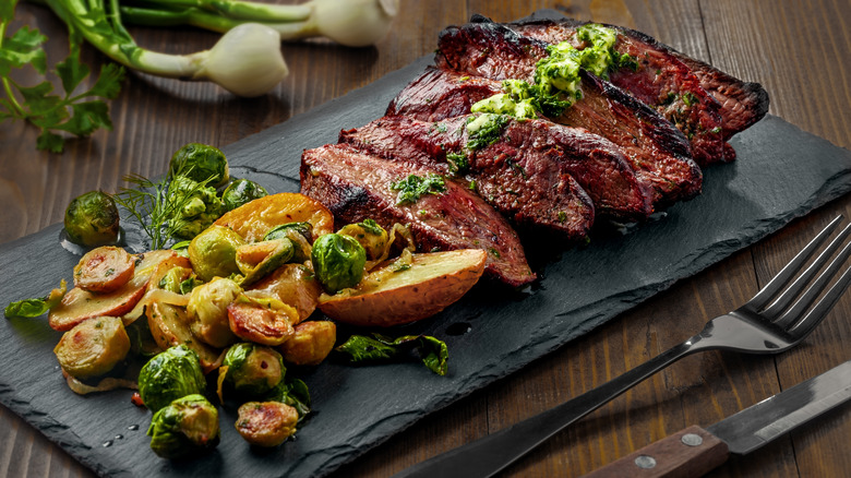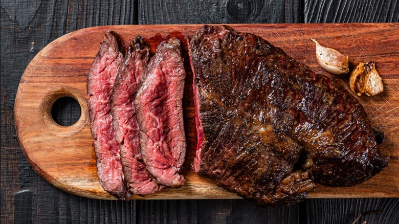 Ironically, there is a steak called a faux hanger, and you might logically think this is the best alternative for hanger steak, but that's actually not the case. Faux hanger does make an excellent substitute for a skirt steak, though, per Epicurious. It's also great in a marinade and appeals to those who love a beefy-tasting steak with a denser texture than the hanger. However, if you're looking for a hanger steak alternative, you won't want to ask for faux hanger — you'll only end up disappointed and searching for an explanation as to why it isn't the same as you remembered.