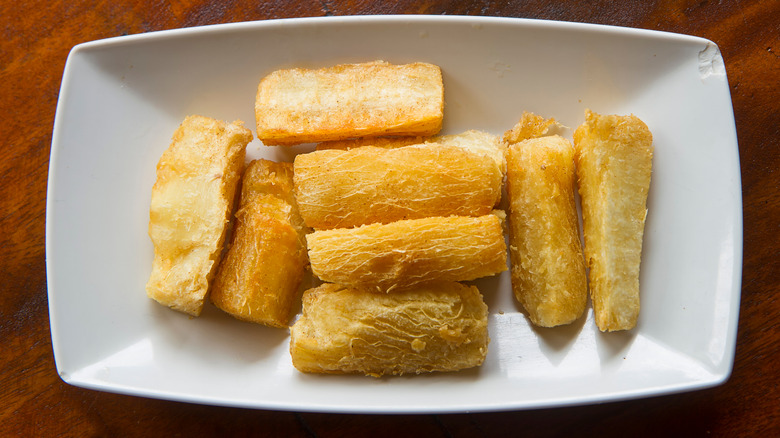 If you've ever been to a Latin American restaurant or tend to order anything that says "fries" on a menu, chances are you've come across yuca — occasionally spelled as yucca. Yuca is a staple in Latin and Dominican cuisine. On an American menu, it often takes the form of a french fry, replete with a golden exterior and dipping sauce.