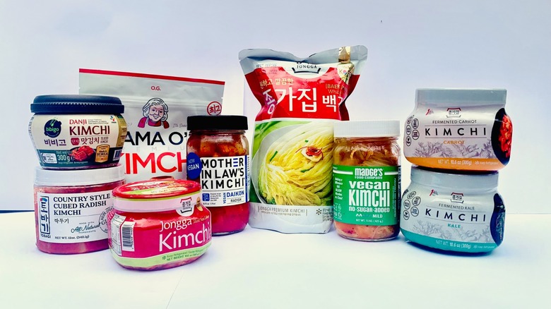 But as I discovered — when I tasted my way through 12 different kimchi brands — not all kimchi is created equally. There are different types of kimchi, but I mainly focused on sliced (as opposed to whole-leaf) baechu kimchi for this article. Of course, kimchi quality assessments are quite subjective, and as someone who didn't grow up eating kimchi at home, my preferences may be different from those of other kimchi lovers out there, although I am an avid kimchi consumer. Regardless, I ranked each of these brands, starting from my least favorite to the best of the bunch, according to both flavor and texture, prizing highly concentrated flavors and crunchy textures to give you a better idea of which kimchi brands you may want to try next. Hopefully, this ranking will point you in the direction of your go-to kimchi brand.