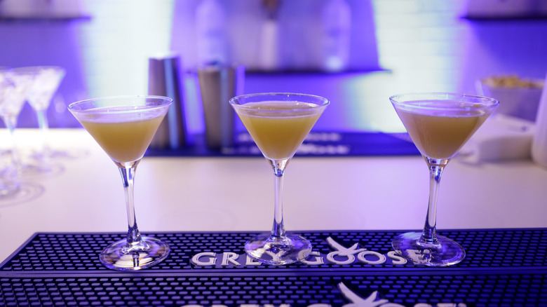 Whether you are a spirits purist or want to bury the taste of your alcohol with mixers, there's a way to drink Grey Goose for everyone. If you are brave enough to drink vodka straight, Grey Goose recommends doing so with this three-step process: look, smell, then taste. First, the manufacturer says you should look at your vodka; pour some in a clear glass and hold it up to the light. Notice its color, clarity, and "legs" — or how it clings to the glass when swirled around. Grey Goose then encourages you to explore the vodka's aromatics by swirling the liquid and gently inhaling. Finally, slowly introduce the straight spirit to your palate by sipping a tiny amount, swirling it in your mouth, then spitting it out. Take another drink immediately after priming your palate to catch all of the vodka's subtle tastes.