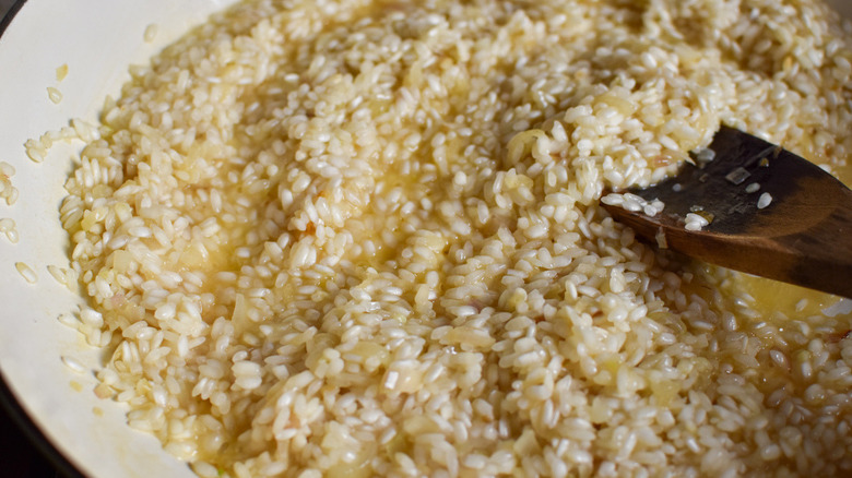 A note on the rice: Rapone says the starchy exterior of arborio rice provides a creamy texture when cooked. This, she explains, "is what you want for risotto." She does tell us that there are other types of rice that make a good risotto, but arborio is the one you'll find most commonly in the grocery store.