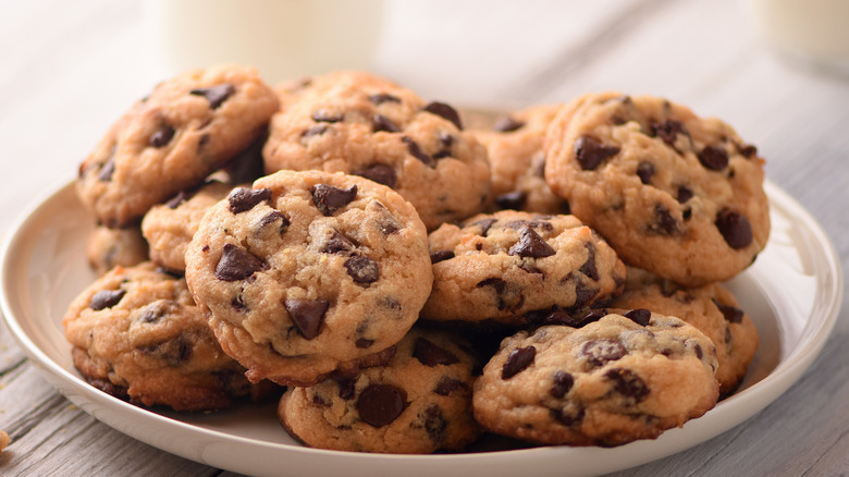 According to Nestlé, the chocolate chip cookie was invented by Ruth Wakefield who operated the Toll House restaurant in Whitman, Massachusetts. In the 1930s, she decided to add pieces of chocolate from a Nestlé semi-sweet chocolate bar into her Butter Drop Do cookie recipe. A Boston newspaper later picked up the "Toll House Crunch Cookie" recipe and its popularity grew, according to Nestlé. The recipe became known by its current moniker, chocolate chip cookies, around 1940 (via Back Then History).