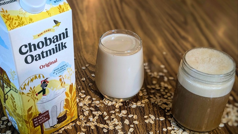 From spending years steeped in the world of plant-based cooking, I know Chobani is the preferred choice of many, and I can see why. Chobani's original oat milk is expertly balanced. It has a very mild oat flavor and a fatty, rich consistency that isn't too thick to use as cereal milk, but it's substantial enough for smoothies and creamy coffee drinks. It's one of the best options on this list for sipping straight, thanks to its neutral flavor profile and crisp, refreshing aftertaste. When it came time to test its foaming abilities, Chobani held its own — maybe not the most decadent, but still a strong contender for the best milk for cappuccinos on this list, especially if you like them extra dry and fluffy.
