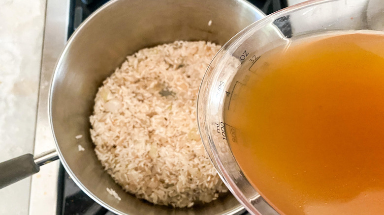 Add the rice and broth to saucepan