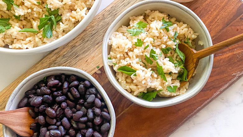 Rice pilaf is one of the most popular sides that you can serve for lunch or dinner. It's a classic dish and an excellent way to add a carb to pretty much any meal. With the addition of an entire bulb of garlic, this rice pilaf just got a whole lot more delicious than plain rice. Another part of this recipe that makes this rice special is the fact that you cook it with chicken or vegetable oil instead of water, which also infuses plenty of flavor into the rice itself. Stir in a little bit of fresh parsley, and you've got yourself a side dish that you'll want to make over and over.