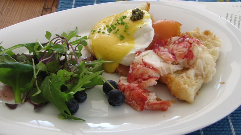 Other variations stretch the limits to an extreme while staying just close enough to the original recipe. In the New Orleans French Quarter, famed Antoine's Restaurant's rendition, named Eggs Sardou after 19th-century playwright Victorien Sardou, adds a side of buttered spinach, anchovies, and slow-cooked artichokes (via National Geographic UK). Other regional variations along the east coast of the U.S. include Eggs Neptune, which uses local seafood like lobster in New England, crabmeat in the Chesapeake Bay area, and shrimp in Carolina Low Country.
