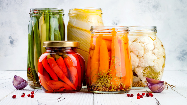 A few sterilized jars and some white wine vinegar are all you need to pickle just about anything, including peppers. According to Science Direct, pickling involves taking foods and placing them in either vinegar or in brine. Asia Society also emphasizes that lemon juice or sugar water may be used to create an acidic brine. Such an ancient technique was commonly used by our ancestors to survive harsh winters and bouts of famine, according to the Exploratorium. Nowadays, you'll find both pickled and fermented treats all across the globe, such as miso pickles in Japan or kimchi in Korea (via Exploratorium).