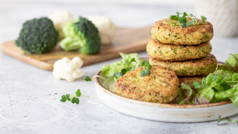 One easy way to fix the problem of a mushy veggie burger patty is to remove some of the ingredients' moisture (via The Kitchn). This prevents your burger from essentially steaming itself from the inside out. One method is to char the surface of the vegetables and other raw ingredients by removing more of their moisture. Moisture is one of the Maillard Reactions' worst enemies, and you need those chemical reactions to achieve an attractive coloring and a tasty char on the outside of your burger (via Jessica Gavin). While this reaction is primarily seen in meat-based burgers, scientists have been working to replicate it in plant-based alternatives, according to The Conversation.
