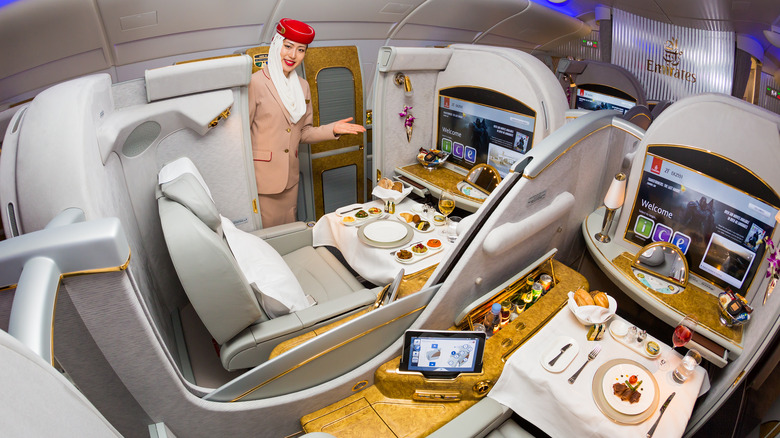 With leather seats that recline completely and privacy panels in place, each guest is treated like royalty. Flight attendants are on hand to indulge your craving for comfortability. Fluffy pillows, cozy blankets, and other luxurious essentials are bestowed on eager guests to ensure they feel pampered and cared for. Luxury Hotels reveals that the airline will even chauffeur guests to the airport in private limousines, making it one of the most luxurious commercial airlines.