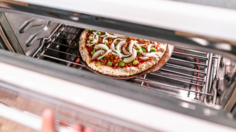 Crust Kingdom says the key is to make sure the bottom of the pizza gets enough heat. Higher temperatures work well in pizza ovens, but you may need to cook for longer at a lower temperature with regular home kitchen ovens. Consider lowering your pizza on the oven rack, so the bottom gets as much heat as the top.