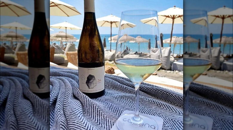 To highlight these similar aromas in your meal, look for a standard Muscadet. However, if you want a slightly smoother yet equally refreshing wine, check for Muscadet sur lie on the label. These styles are made by keeping the wine in contact with the lees, aka dead yeast cells and sediment. While it sounds like exactly the type of particle you wouldn't want in your wine, they lend rich flavors and a creamy texture (via Vinepair).