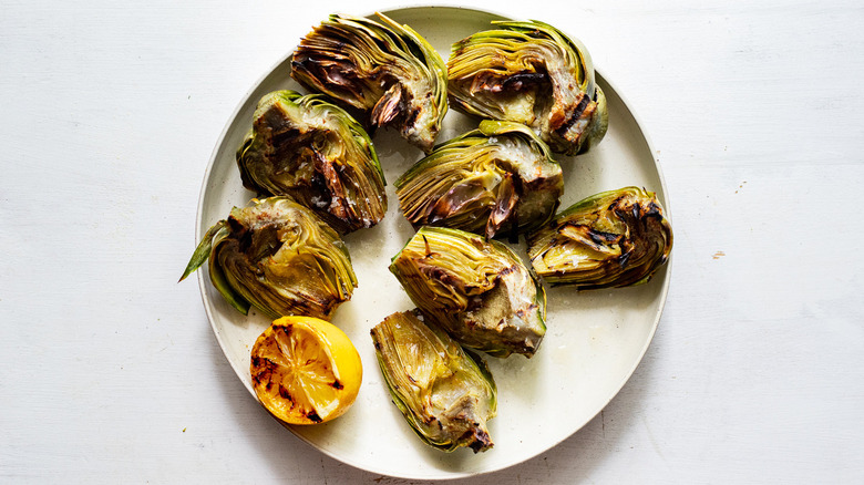 "Charring the lemon is pretty special," Castellano says, explaining that the process "allows the sugars to caramelize just a little bit on top, which gives the lemon juice a little bit of roundness to an otherwise tart bite." And when you squeeze the lemon onto the artichokes, the subtly sweet, subtly tart flavor will perfectly complement the earthy flavors from the artichokes themselves.