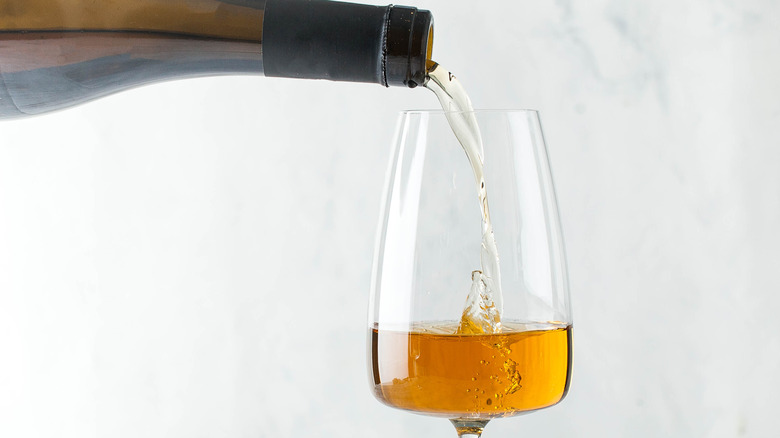 Right off the bat, let's dispel any notions around the fruit used to produce orange wine — it is not made with oranges (although there are wineries in Florida that do make wine with oranges ... oh, Florida). Orange wine is similar to rosé in some ways. Rosé is made by allowing the juice to have contact with the skins of red wine grapes to give it that beautiful pink hue and impart texture and tannic structure. WineTraveler tells us that orange wine is the same, except it is made using white wine grapes. The result is an orange-hued wine with layers of complexity. This production method can impart notes of orange blossom, marmalade, and rooibos tea, among other intriguing nuances.
