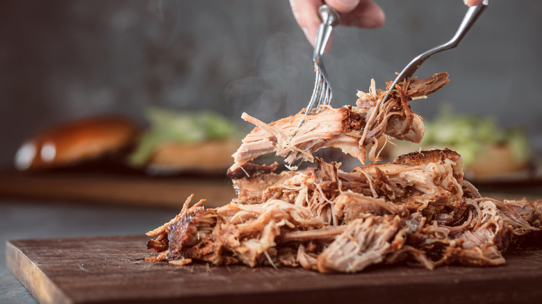 Done right, pulled pork is smoky and sweet with a little heat. Since the pork is pulled into shreds — hence the name — no knife is necessary, just scoop and enjoy. But, don't stop there, if you have extra drippings in the pan or a favorite barbecue sauce, slather it on. Your mashed potatoes are craving all you can throw at them.